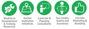 - Align financial incentives for businesses to expand in or relocate to urban industrial districts